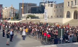 Lo stadio di Tirana è pronto ad accogliere i tifosi della Roma. Il corteo dei sostenitori giallorossi è giunto in prossimità dell’impianto