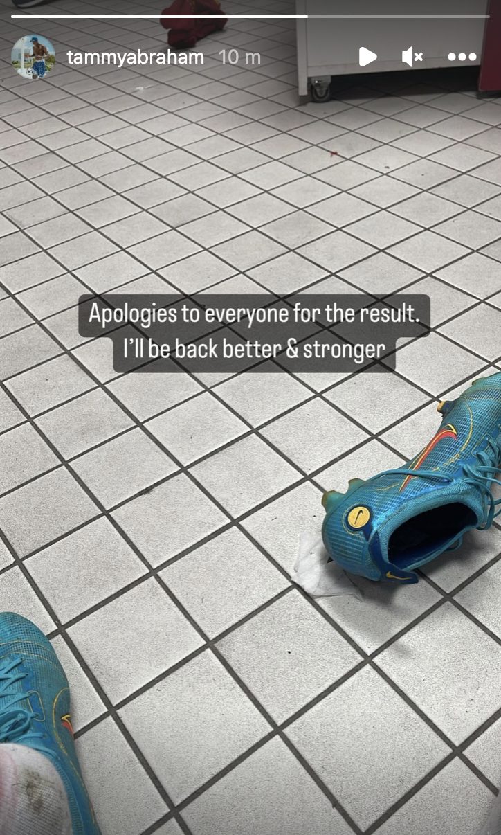 Tammy Abraham chiede scusa ai tifosi dopo la sconfitta contro l’Atalanta. “Scusate per il risultato, tornerò migliore e più forte”, ha scritto l’attaccante inglese in una storia su Instagram.