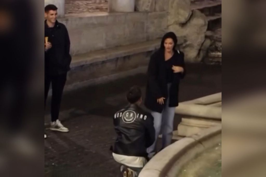 La Joya si inginocchia davanti alla compagna, presente anche Morata con la moglie...