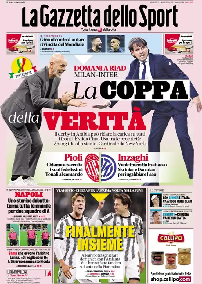 Le prime pagine dei principali quotidiani sportivi